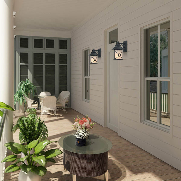 Outdoor wall lights are purposed for lighting up spacious areas outdoors. These are elegant mood evoking fixtures, the feel of living in a mountainous farmhouse or a beautiful wooded area can be created with their warm welcoming glow. Scones are vertical fixtures that adorn the outdoor walls; they shoot the light upwards and brighten up the spaces. They can be installed as a protective feature of patios and garden boundaries.
