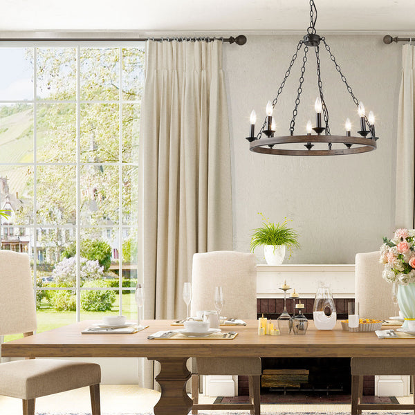 A candle chandelier for table has been classy since the days of royalty as you can see in various classic movies or television shows. The candle-dipping stems of the chandeliers can be made of wood or metal with rust, black or distressed finish. Enjoy highly sophisticated royal dining under the two or one-tier chandeliers with magnificently curved arms or the beaded basket chandeliers. If such grandeur is not your thing, there are wagon wheel chandeliers and transitional chandeliers in minimalist design.