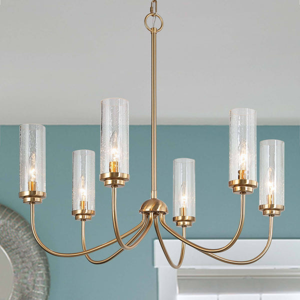 This Gold Modern Minimalist Chandelier is designed for those who are passionate about modern elegance. Once you hang such exquisite modern chandeliers for bedroom with the gorgeous sleek frames and a flower shape finish, the shining cylindrical lights will melt your heart subtly.