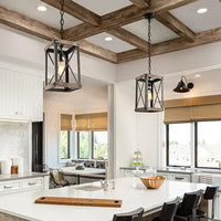 However, you need to choose farmhouse island lighting with 3, 4 and 6 light fixtures if you want light dispersion for a large space in the kitchen, say, for example, a dining space adjacent to the kitchen. The 4-light candelabra fixture with two wooden and metal crisscrossed frames or the 6-light chandelier with one distressed wooden frame and three matte black frames would offer a rustic chic appearance.