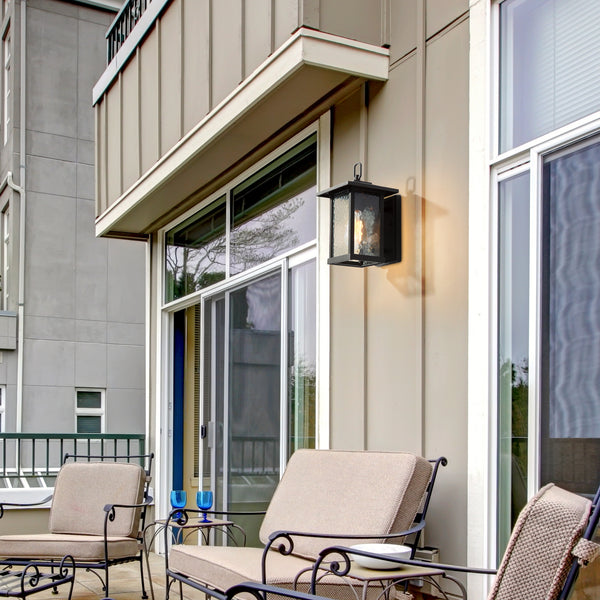 Coming to seeded and obscured glass body supported by metal frames, these offer a look of water drops trickling down on a rainy day while the warm bulb keeps up the cozy vibe around the outdoor space.