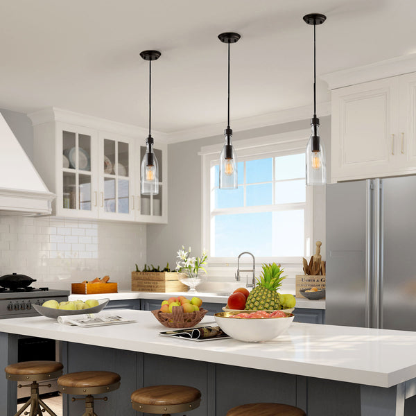 If you are looking for rustic pendant lighting for kitchen island without glass, look for the foyer pendant with pine wood frame and X-patterned iron cage in black finish. The oval and drum-shaped 3 and 4 light fixtures respectively can be great options for dining space, living room, and seating area while the 1-light cylindrical mini cage light fixture and spiral bronze cage ceiling light offer a focal point and can be a great choice if you want a light for a particular area.