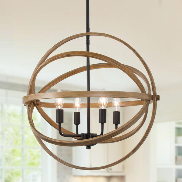 Features: Four round wood frames encircle into a rustic orb to enhance the modern farmhouse look.