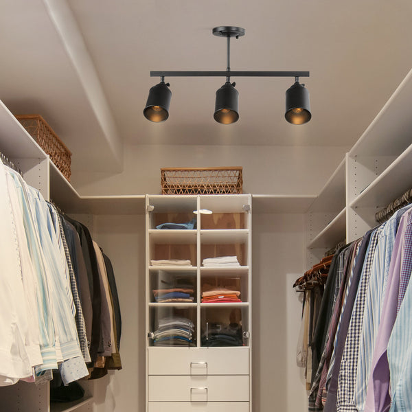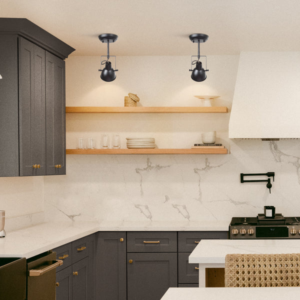 Those looking for ceiling track lights for kitchen would love the 12.2”x24.8” Split Rail Track Luminaire in black metal finish. Whether you choose to install them on the wall against the ceiling or kitchen counter or hang them from the ceiling above the island, these semi flush mount fixtures of small canopy height would offer adjustable directional lighting from the metal bars.