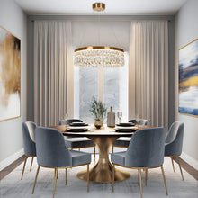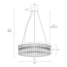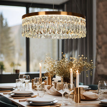 This LED chandelier features transparent crystal, adding a glamorous touch and providing ample illumination for your living room, dining room, or kitchen.